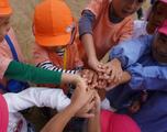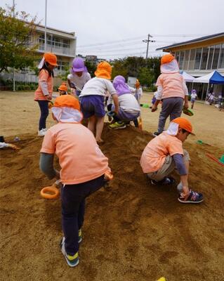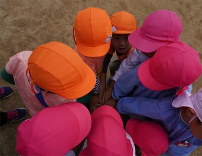「同じ小学校に行く」の会👇(自分たちで声を掛け合って集まって円陣を組んでいました)