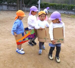 みかん組さんはどんぐり帽子をつくって被り、ころころと走っていましたよ