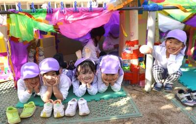 秋の遊びいっぱい! 投稿: ルーム管理者 (11/11) ざくろ組さんはクラスでしているお祭りにみかん組さんを呼ぶことにしました 開店準備👇 そして、みかん組さんが来てくれました 楽しかったようです! ぶどう組さんもまた呼ぶそうですよ ぶどう組さんはキャンプごっこが楽しいようです バーベキュー👇 テントもありますよ きっちり並べていてビックリ! 電車に乗ってバッタ探しにも行きます