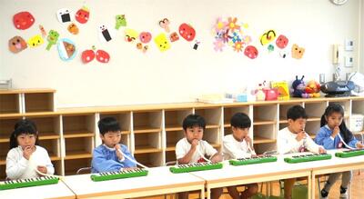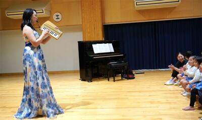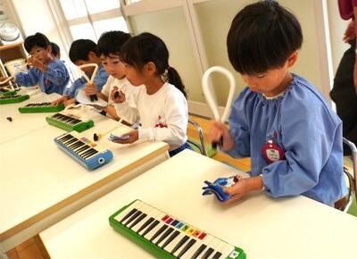 前半はざくろ組さんに鍵盤ハーモニカの指導をしていただきました。
