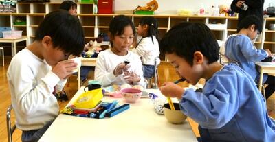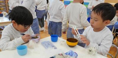 ざくろ組さんが育てているニンジンの間引きと、ぶどうさんが育てている大根の間引きでスープをつくりました☺