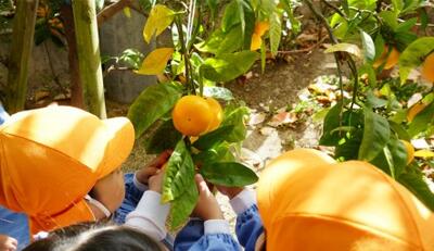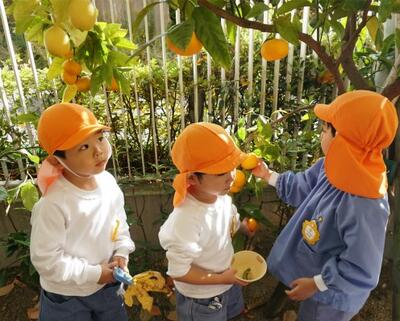 さらに みかん組さんは一番先にみかんを収穫しました
