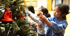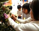 幼稚園の大きなツリーにみんなが飾りをつけてくれました☺
