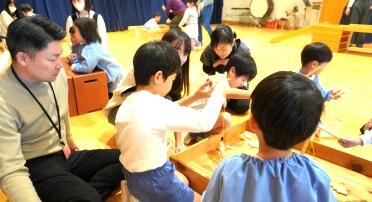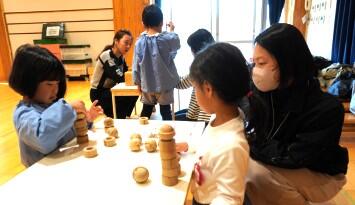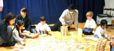 木の玩具で遊んだり、丹波年輪の里さんから来られた方から木のお話をお聞きして興味をさらに膨らませたりしました。