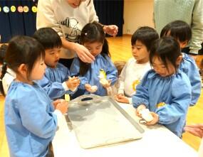 みんなで鏡餅のお話を聞き…