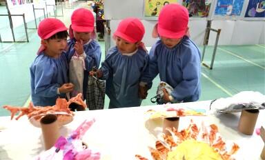 造形展 投稿: ルーム管理者 (19:24) 岩園小学校 造形展にざくろ組さんが行きました 素敵な作品がいっぱい! 「おもしろい!」「きれい!」 「すごい!」「かわいい!」 といろいろに感じたことが思わず口からこぼれていました そして… 「どうやって作っているのかな?」 「箱やペットボトルキャップをこうして使うんだ」 「作ってみたい!」 と考えて自分たちもやってみたくなる姿がありました さすが ざくろ組さん☺