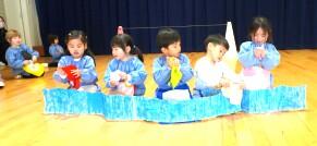 縄跳び体操(寒さもへっちゃら!)・クラスの遊び 投稿: ルーム管理者 (18:51) 今日の体操は2人組で縄跳びを使います はじめは ざくろ組さんとぶどう組さん 続いて ざくろ組さんとみかん組さん 気持ちを合わせながら体を動かすことを楽しんでいましたね☺ 生活発表会に向けたクラスの遊びもみんなで取り組んでいます みかん組さん ぶどう組さんは劇遊びをした後、プログラムの絵を描いていました ざくろ組さんは役を代り合ったり、道具を使って表現したりしています