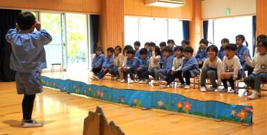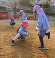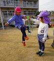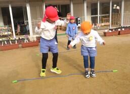 縄跳び体操・劇遊び 投稿: ルーム管理者 (22:29) ざくろ組さんとする縄跳び体操がとっても楽しい! みかん組さんにはとってもやさしく… ぶどう組さんには… ちょっと張り切ってできる楽しさを味わってもらえるように…と考えながらかかわり方を変えている姿がありました。 さすが ざくろ組さん! クラスの遊びも劇らしくなってきていますよ ざくろ組さんの劇を見て、「あんな風にするんだな、すごい!」と憧れと自分たちもやってみようと意欲をもっているぶどう組さん