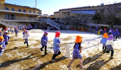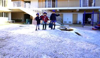 昨日の雪がまだ残っていた園庭