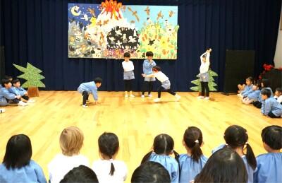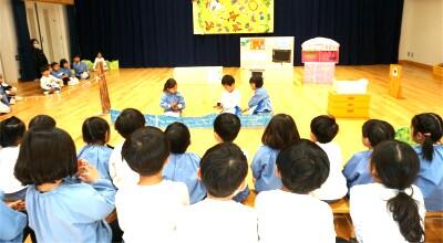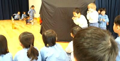発表会 子どもVer♪ 投稿: ルーム管理者 (14:21) 今日は みかん組とざくろ組の劇を子ども達が見ました☺ セリフを覚えて一緒に口ずさんでいたり、思わずやってみたくなって体がちょっぴり動いたりする姿があり微笑ましかったですよ! ぶどう組の劇は後日します☺