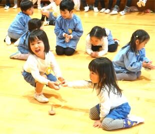 ぶどう組は「こま回しチャレンジ」