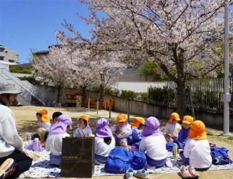 お花見弁当(きりん組) 投稿: ルーム管理者 (12:29) 絶好のお花見日和です🌸 お花見お弁当いいですね☺ 大根のお花も花盛り なんと!花びらの先がピンクに変わってきているんです! 不思議!知らなかったです(3月までぶどう組だったお友達も気づいていましたよ!さすが!) チョウチョさんも遊びに来ていました☺