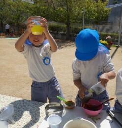お花の色水ジュースづくりをしているのですね