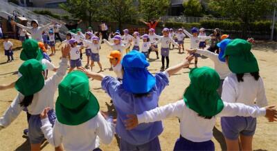 園庭で楽しい遊びが始まっていました☺