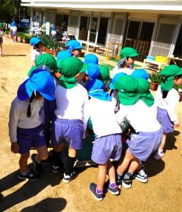 「しょんぼりしている」お花を集めている年長組さんは何をしているのでしょう…