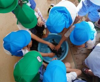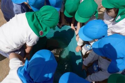 年長組さんがカメのにこちゃんを起こしてくれていました