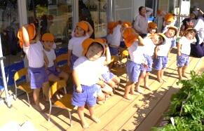 そして ぶどう組さんとみかん組さんは火災の避難訓練をしました。