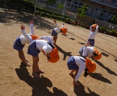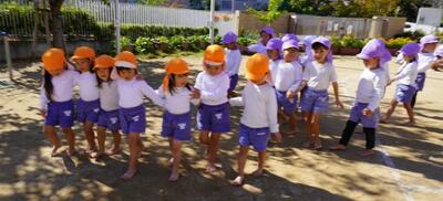 そんな姿にあこがれているぶどう組さん。リズム表現でざくろ組がしている「コバルトスズメ」を秘密練習していました。