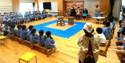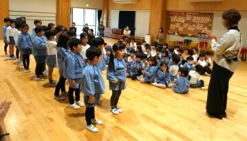 先生から、この時期にちなんだお話のプレゼントを楽しく聞くみんな。