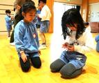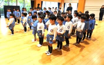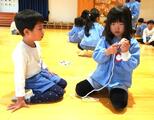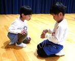 式の後…ぶどう組さんのこま回しを丁寧に教えてくれていたざくろ組さんでした。(回って大喜びのお友達もいましたね!)