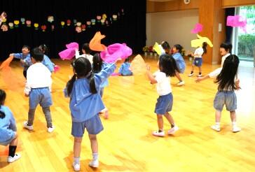 ぶどう組さんはカラフルなスカーフで遊びました↑